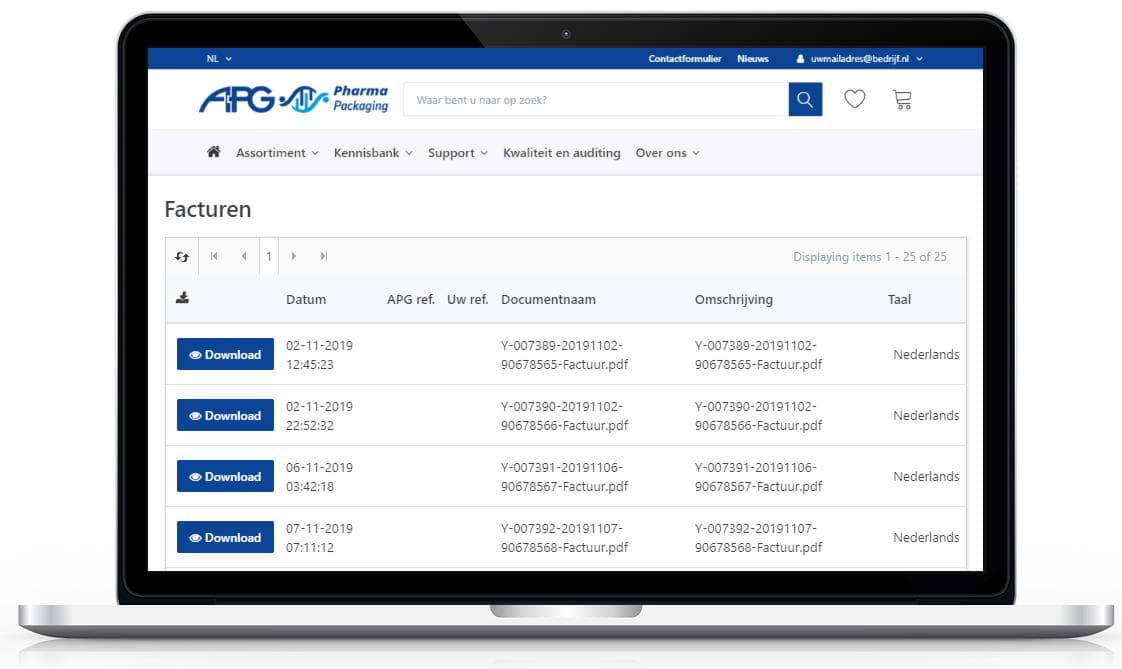 • Download uw offertes, orderbevestigingen, facturen, retourorders en creditfacturen