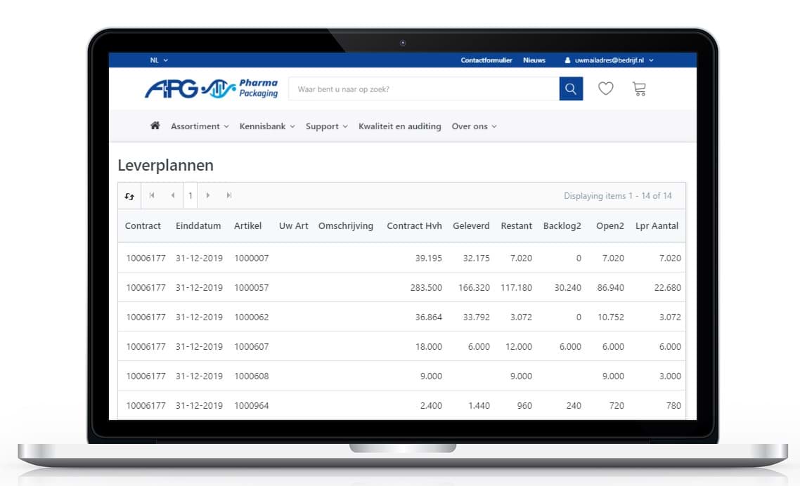 Eén overzicht van specifieke artikelen met uw klantspecifieke prijzen en bijbehorende informatie, zoals: